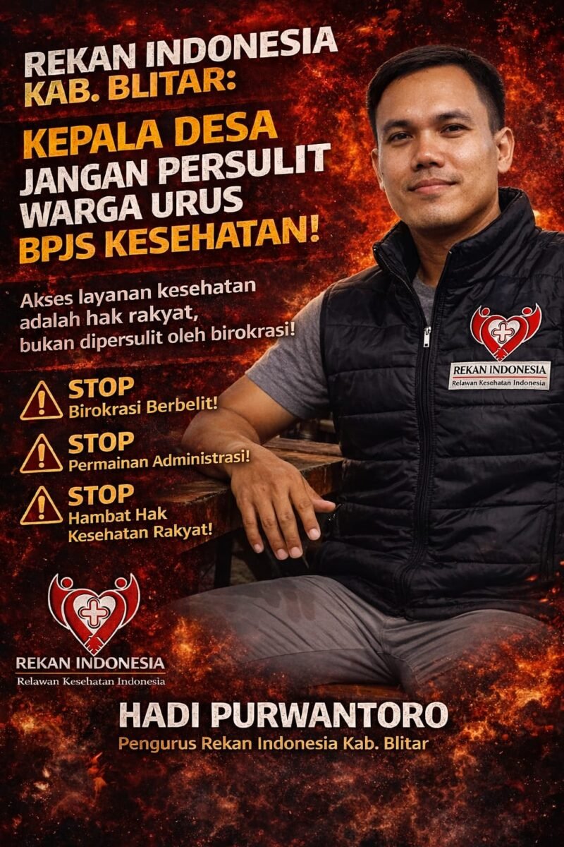 Blitar, Jawa Timur —Nada keras dilontarkan Rekan Indonesia Kabupaten Blitar. Mereka menilai praktik pelayanan administrasi BPJS di tingkat desa sudah melewati batas kewajaran dan berpotensi menjadi bentuk nyata penghambatan hak dasar masyarakat.